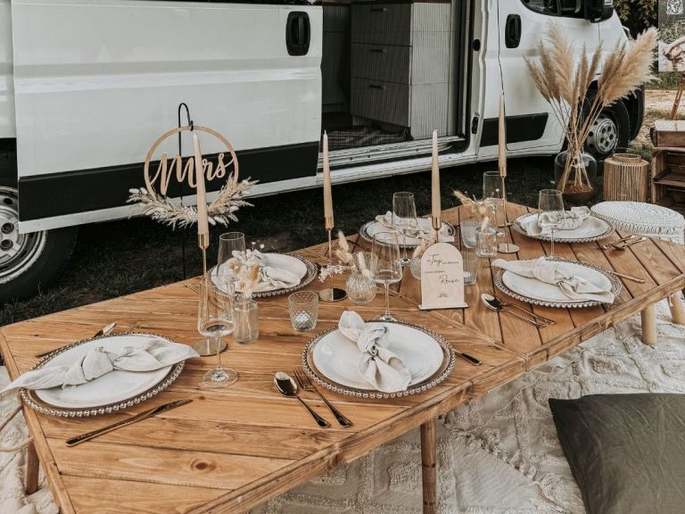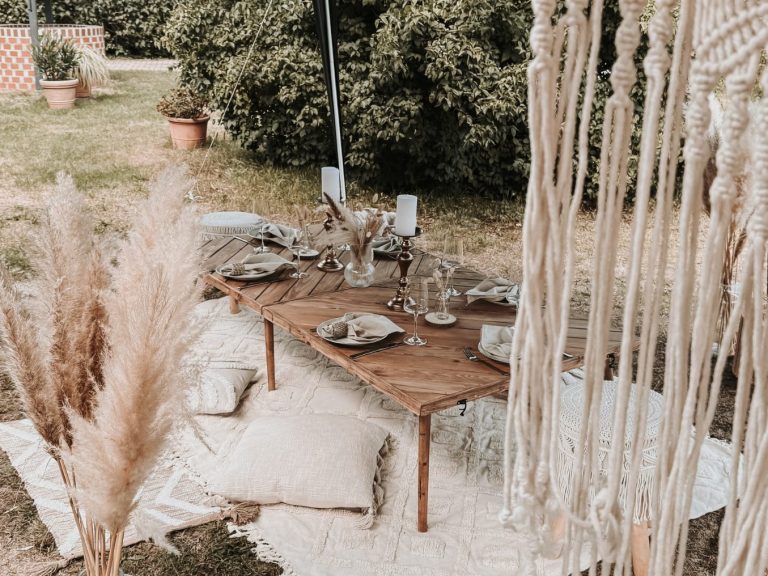 Ich bringe am Tag eures Event alles mit: gemütliche Sitzmöglichkeiten, Kissen, Geschirr, Lichterketten und ausgewählte Deko-Elemente, je nach eurem Geschmack. Jeder Moment wird individuell auf euch abgestimmt für ein Erlebnis, das in Erinnerung bleibt.